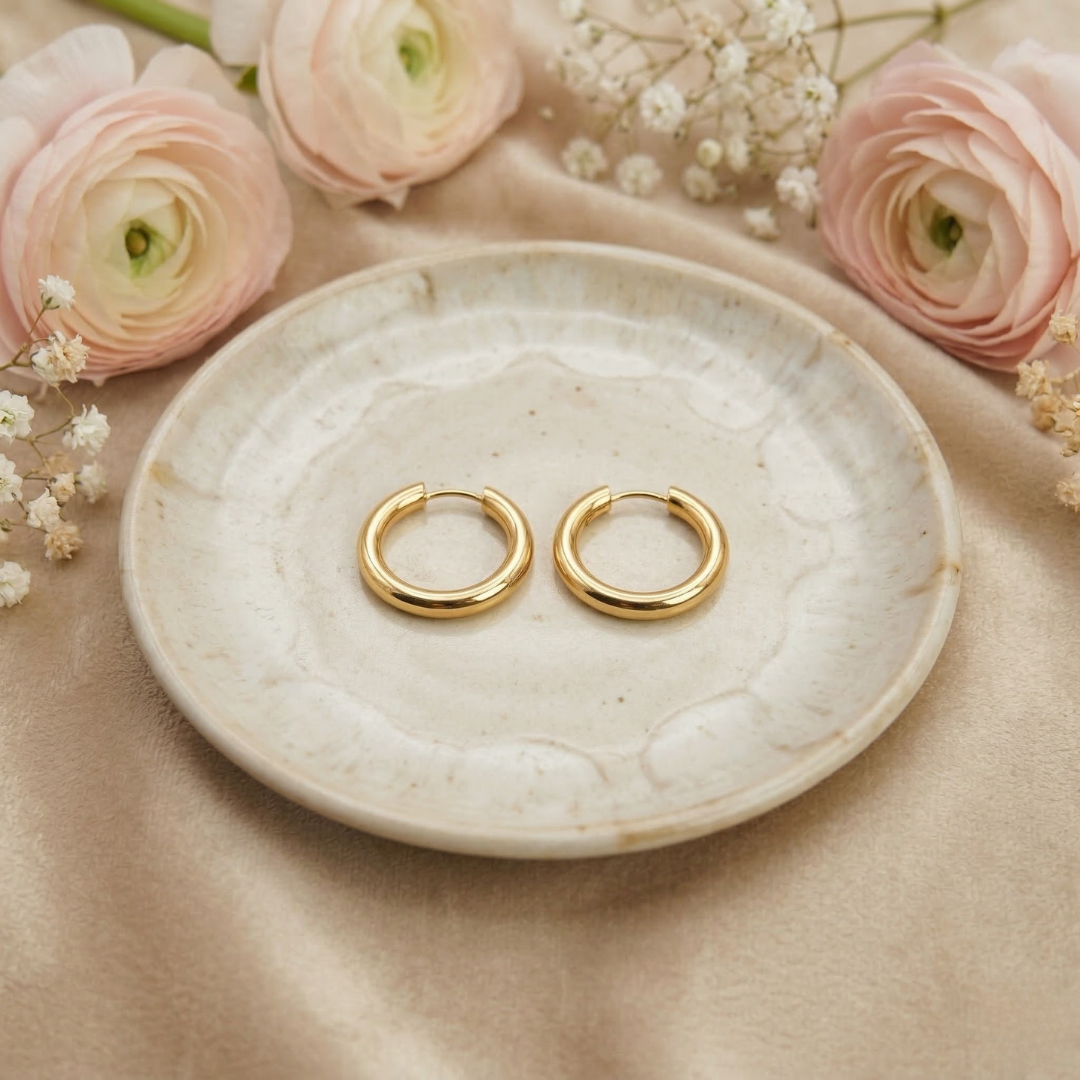 All three pairs are made from premium stainless steel with an anti-tarnish finish. Same gold tone across all three so they always look like a set.